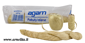 Švarios linų pakulos kamuoliuose ir ritėse.